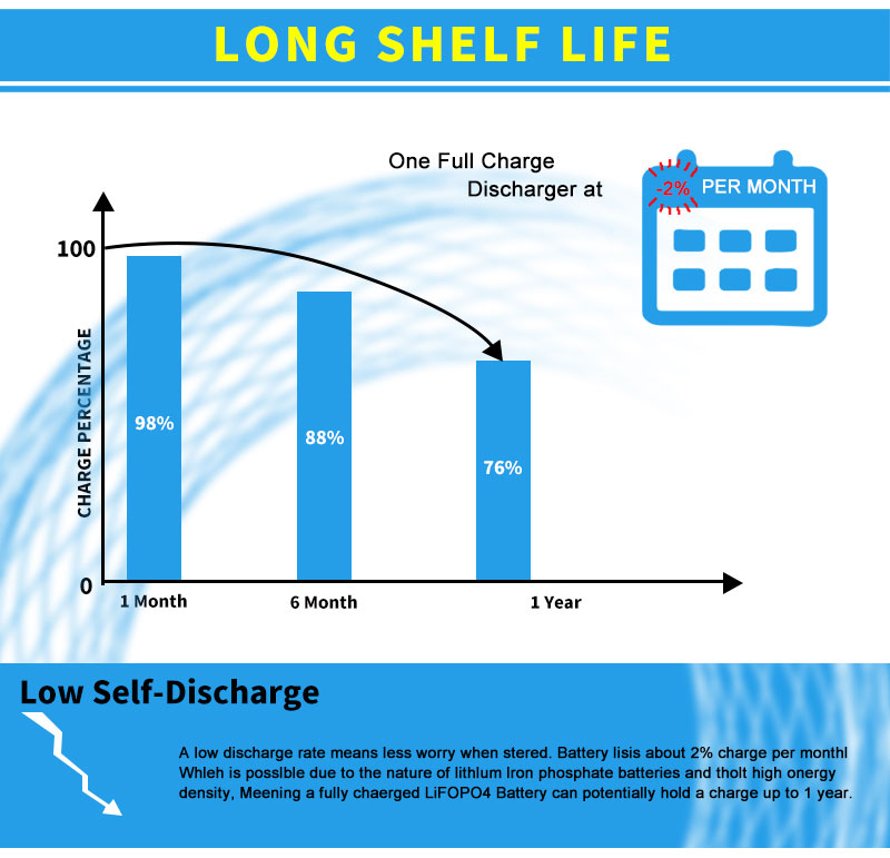 Nudimo dvogodišnju garanciju za sve naše baterije. Osiguravamo životni vijek od najmanje 2000 ciklusa za LiFePO4 bateriju, što znači da će nakon 2000 @ 80% DOD-a i dalje ostati oko 60% kapaciteta. Možete ga koristiti barem 5 godina za normalno svakodnevno punjenje i pražnjenje.